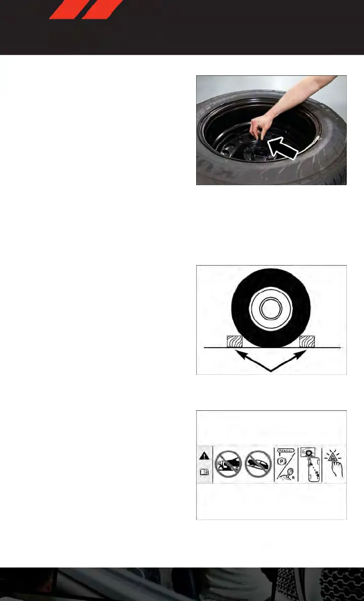 3. Block both the front and rear of the wheel diagonally opposite of the jacking position.