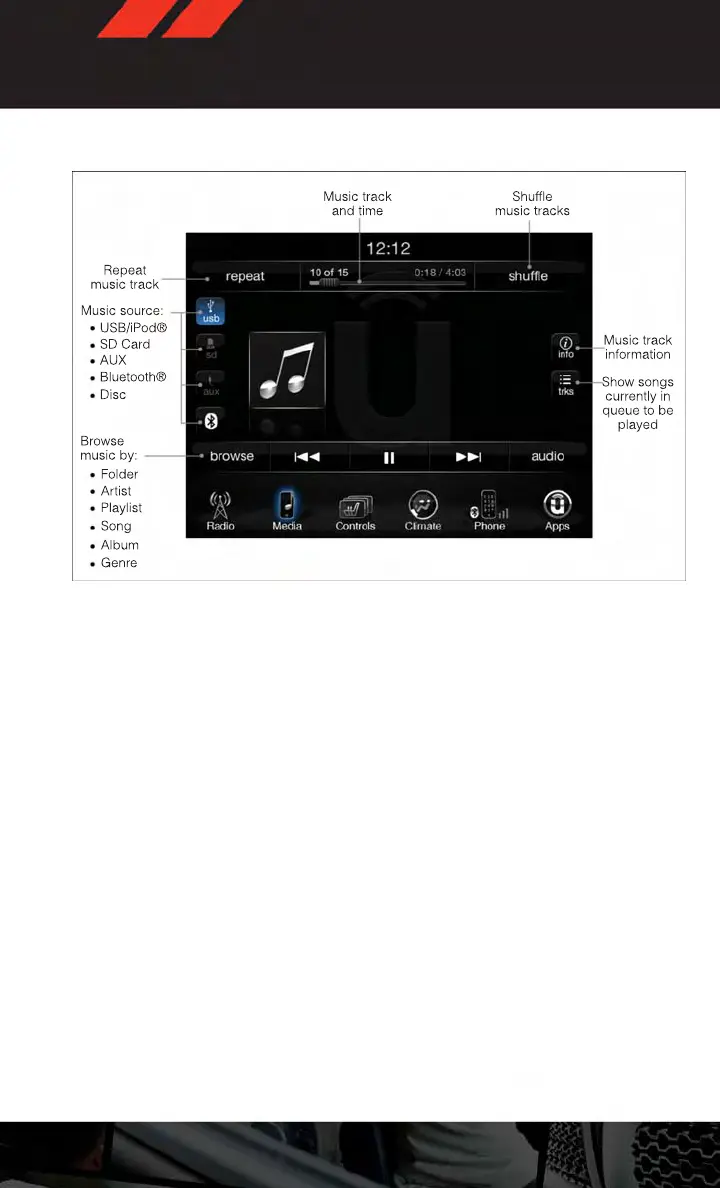 the side of the screen and choose between Disc, AUX, iPod®, Bluetooth® or SD Card.