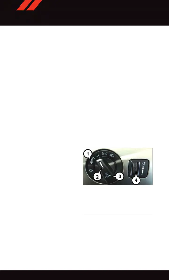 steering wheel. The headlight switch controls the operation of the headlights, parking