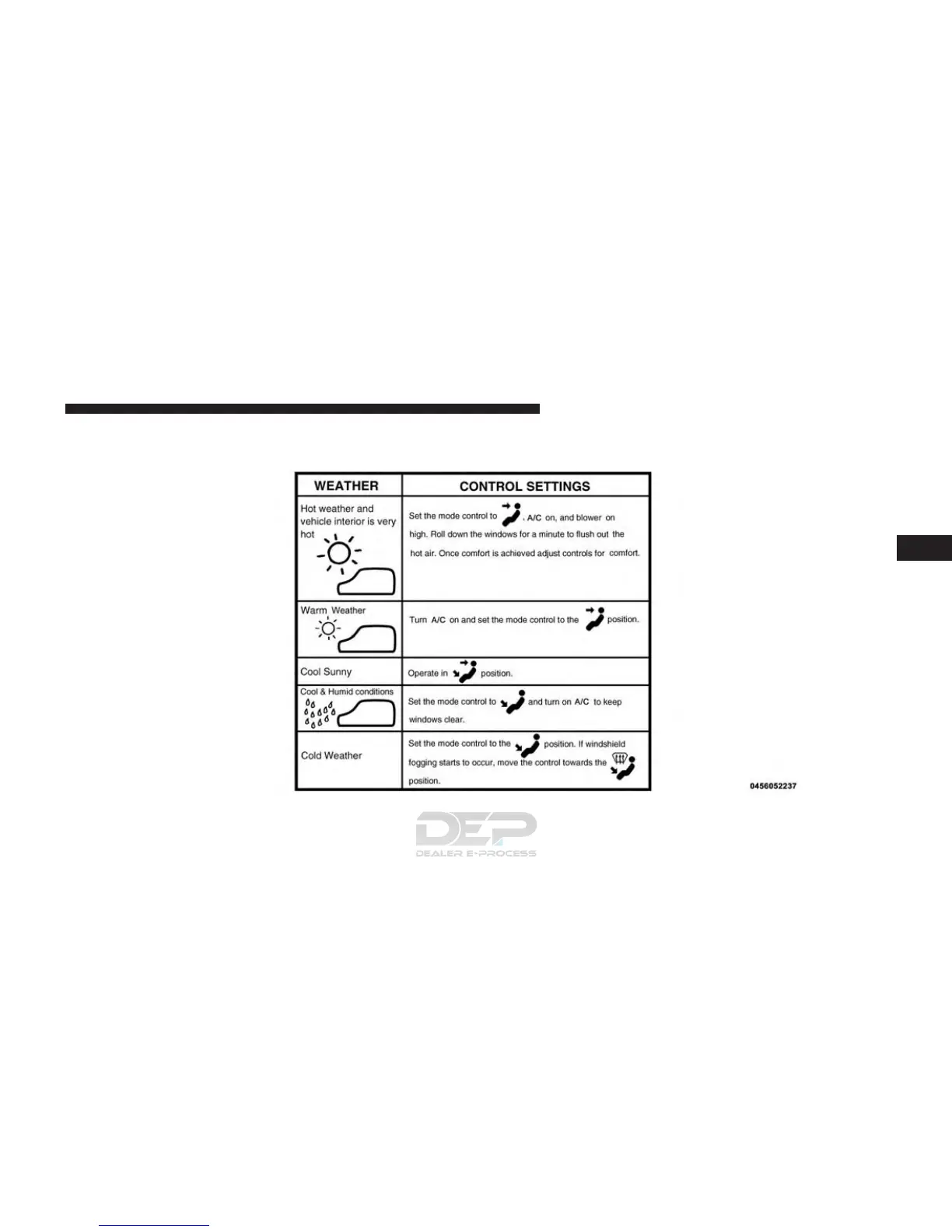 Control Setting Suggestions For Various Weather Conditions