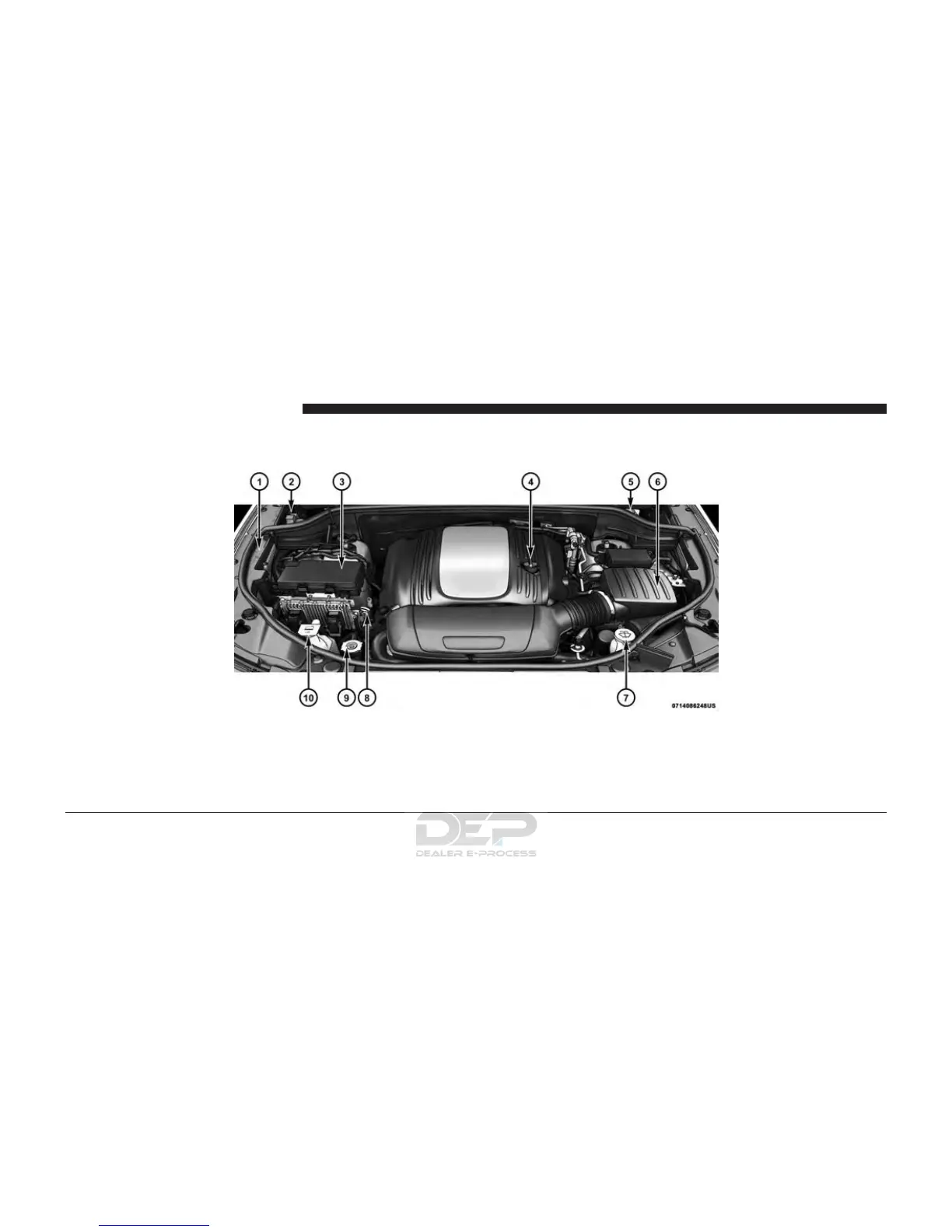 4 — Engine Oil Fill 9 — Engine Coolant Reservoir Pressure Cap