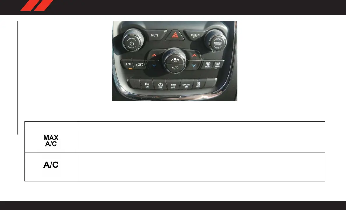 Press and release to change the current setting, the indicator illuminates when MAX A/C is ON. Performing this function again