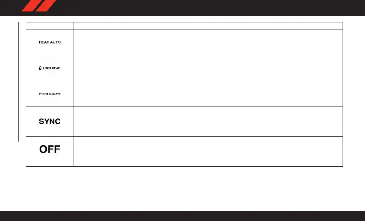 Press and release to lock out the rear manual temperature controls from adjusting the rear temperature and blower settings.