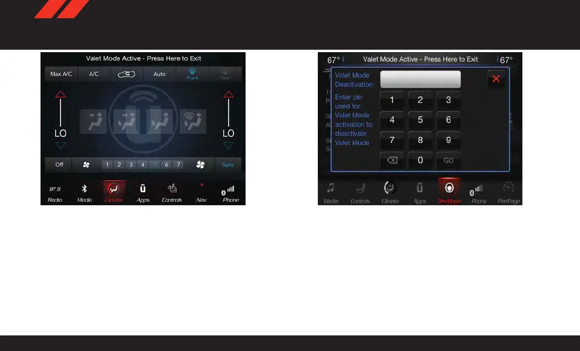 Valet Mode Deactivation Valet Mode Deactivation PIN