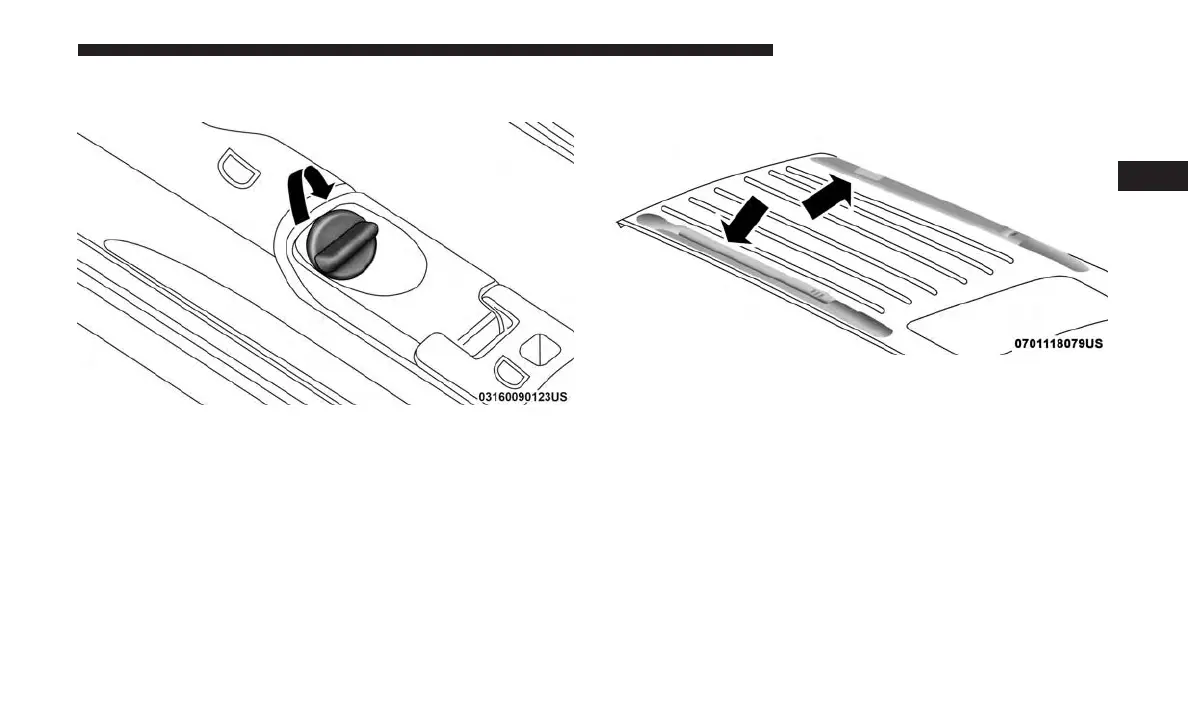• To help control wind noise, stow the crossbars in the side