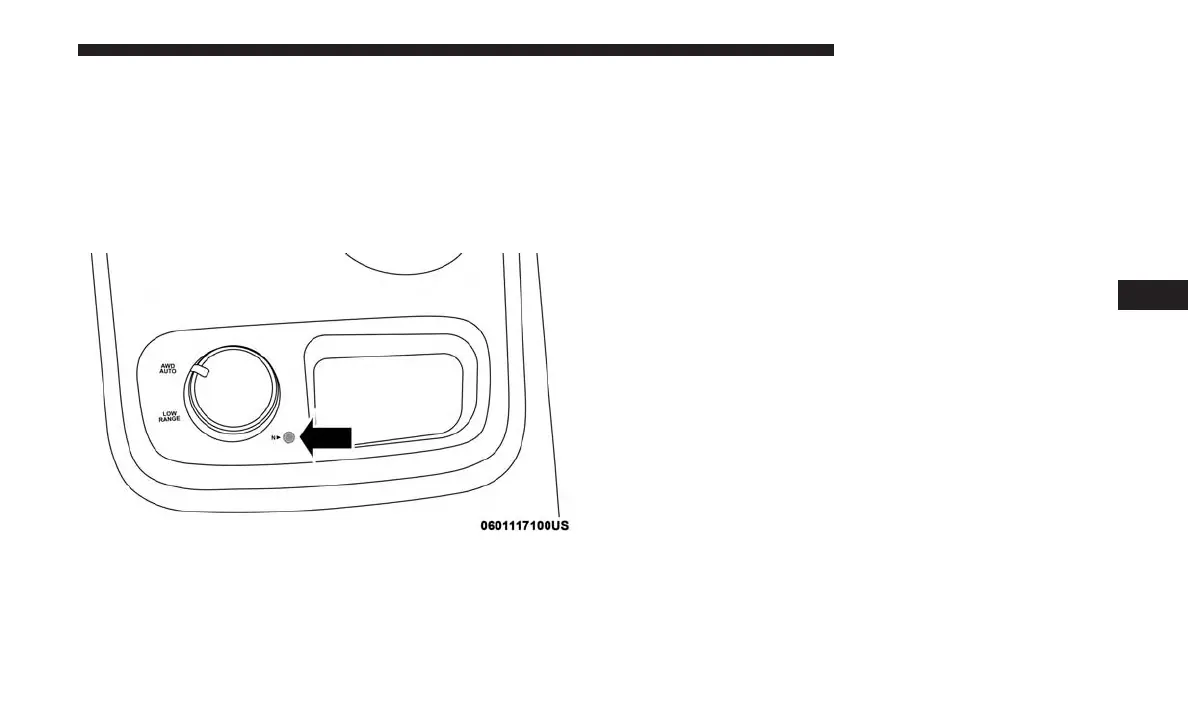 the recessed transfer case NEUTRAL (N) button (located