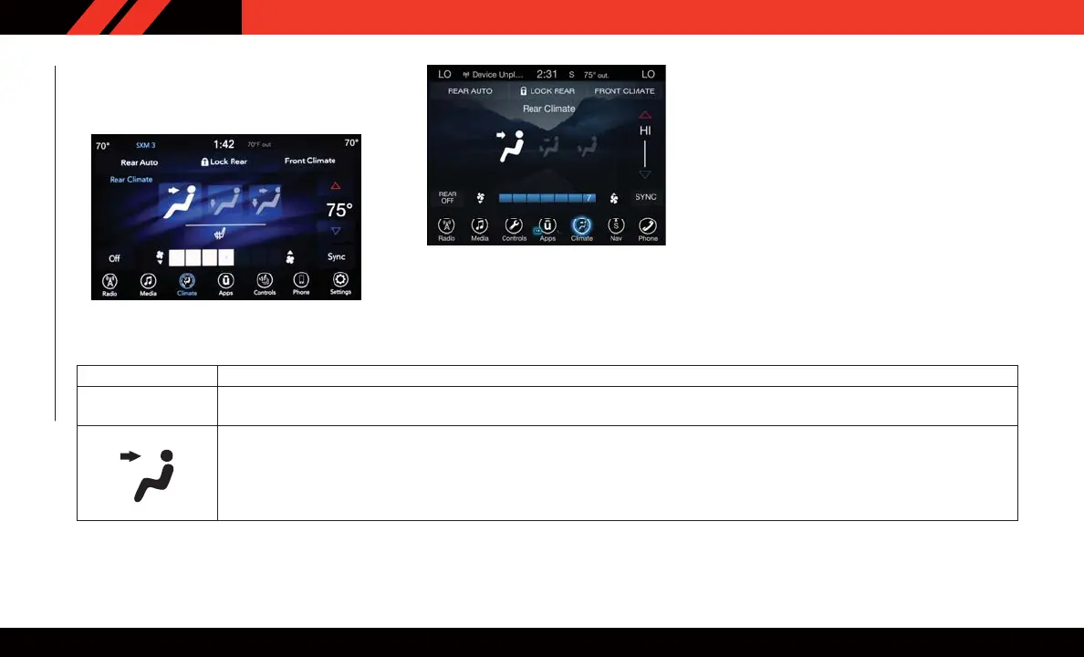 The rear airflow distribution mode can be adjusted so air comes from the headliner outlets, the floor outlets or both.