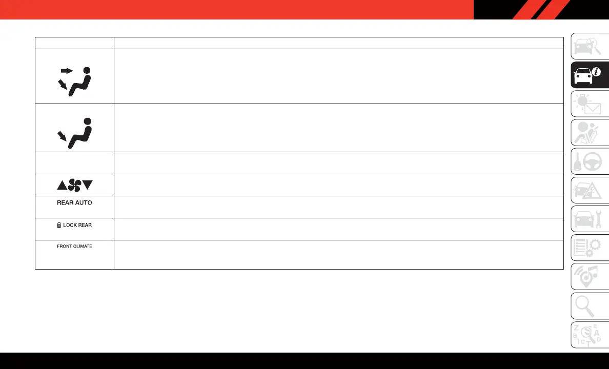 Press and release to lock out the rear manual temperature controls from adjusting the rear temperature and blower settings.