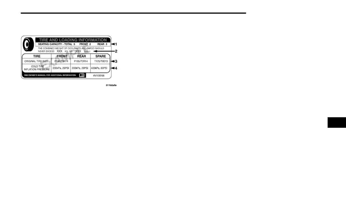 Tire and Loading Information placard. The