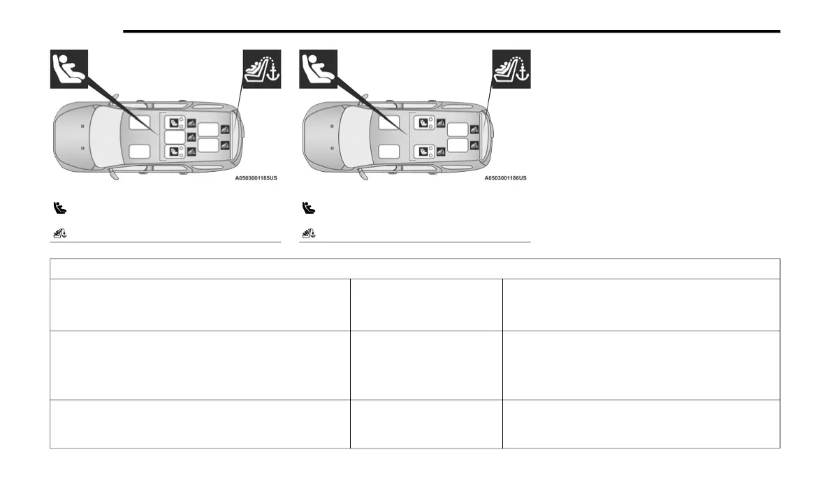 60/40 Second Row LATCH Positions (7 Passenger) Captain’s Chairs Second Row LATCH Positions (6 Passenger)