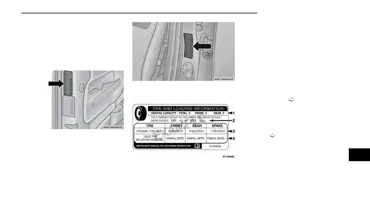 4. Cold tire inflation pressures for the front, rear, and