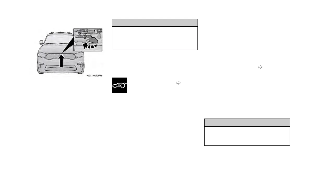 vehicle. If the hood is not fully latched, it could open
