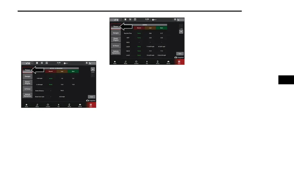 and Accel & Braking timers pages. The