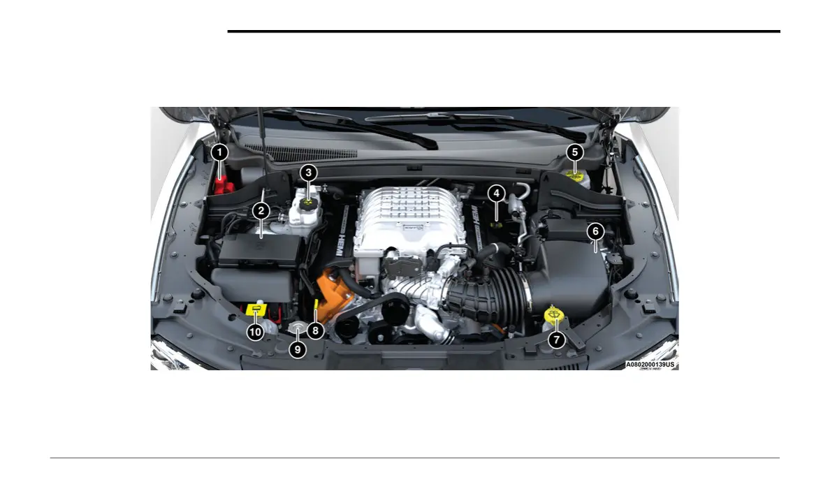 3 — Intercooler Coolant Pressure Cap 8 — Engine Oil Dipstick