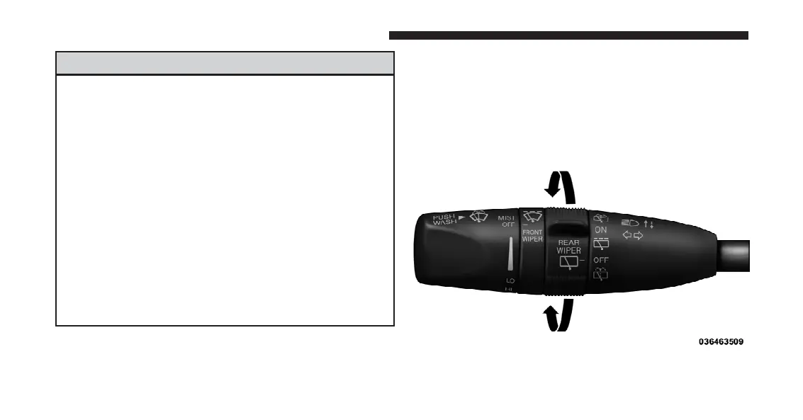 The rear wiper/washer is controlled by a rotary switch