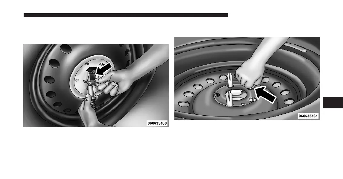 through the hole in the plastic plate and wheel.