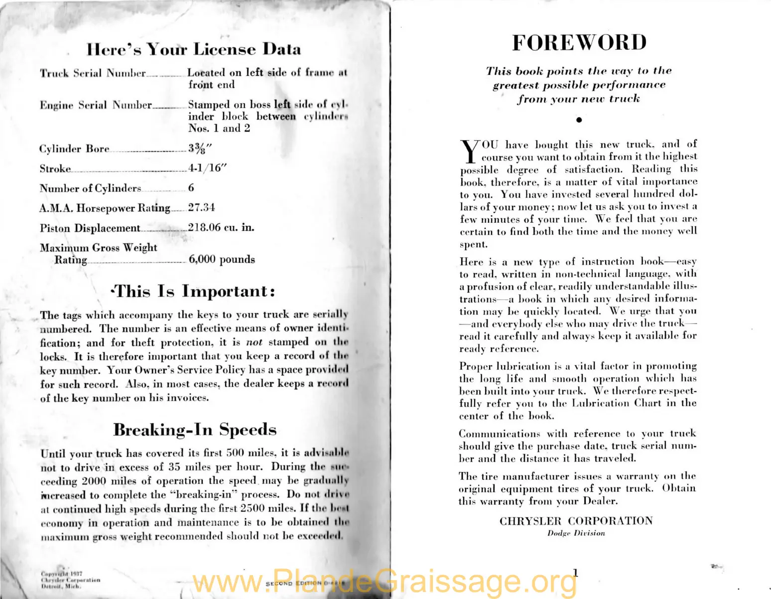Dodge MD Series - Truck Identification and Initial Operation; Breaking-In Procedures