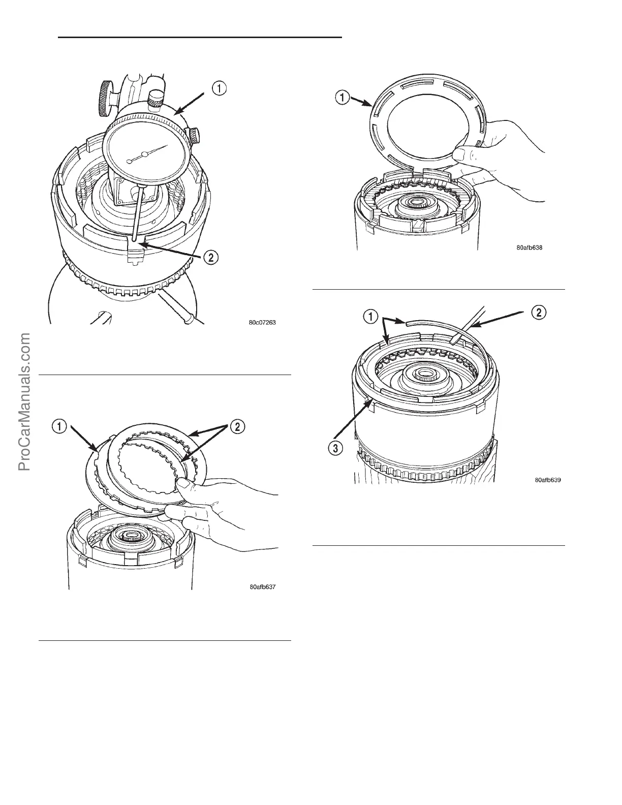 reverse clutch pack measurement in four (4) places,