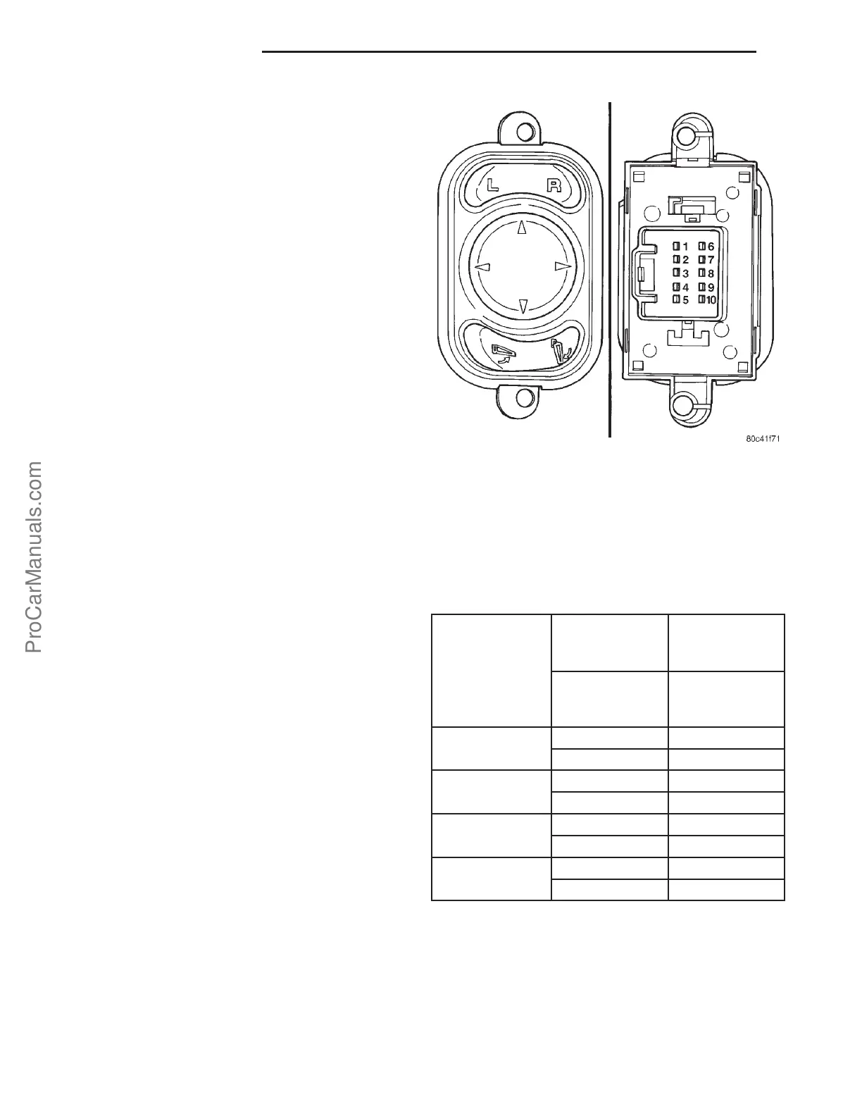 testing left mirror “DOWN↓”, pins 1, 9, 10 will show