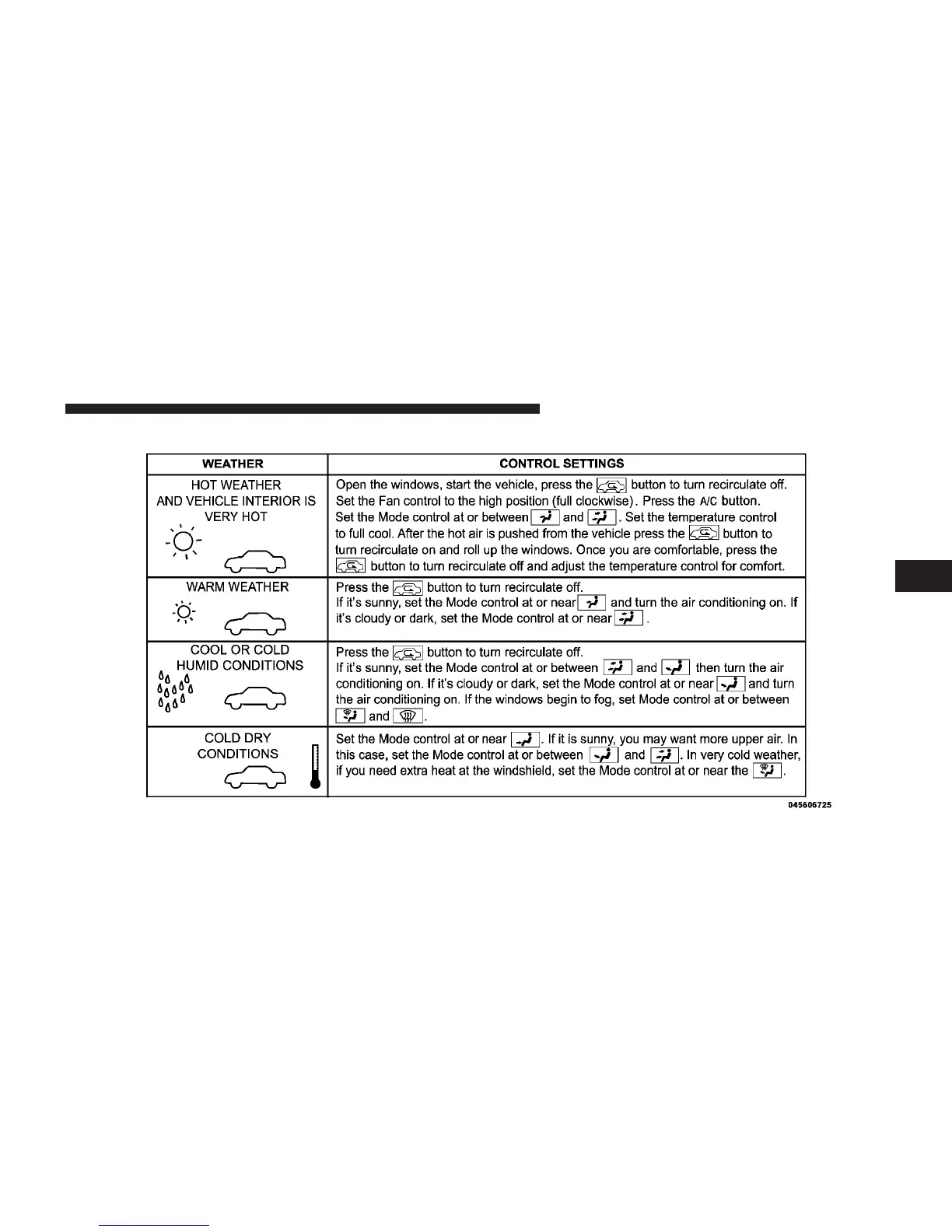 Control Setting Suggestions for Various Weather Conditions