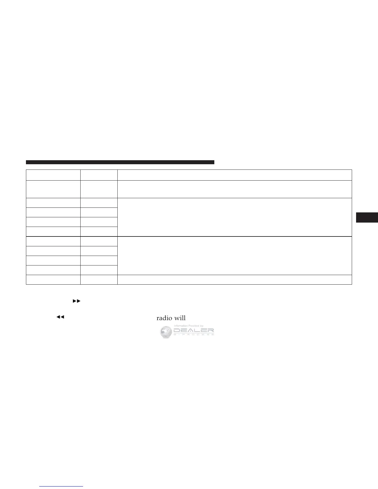pushed again, the radio will skip back to the previous