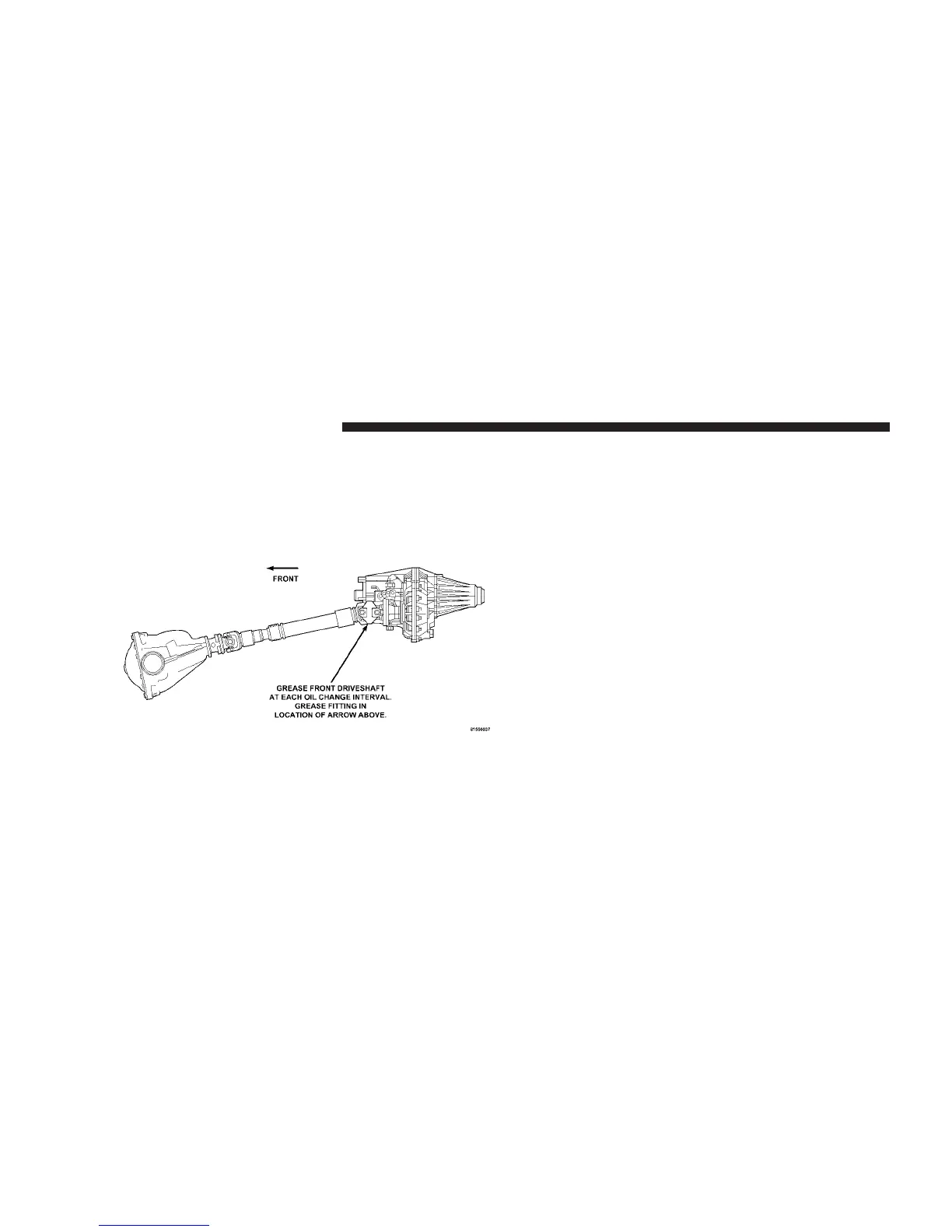 Lubricate the front driveshaft grease fitting at each oil