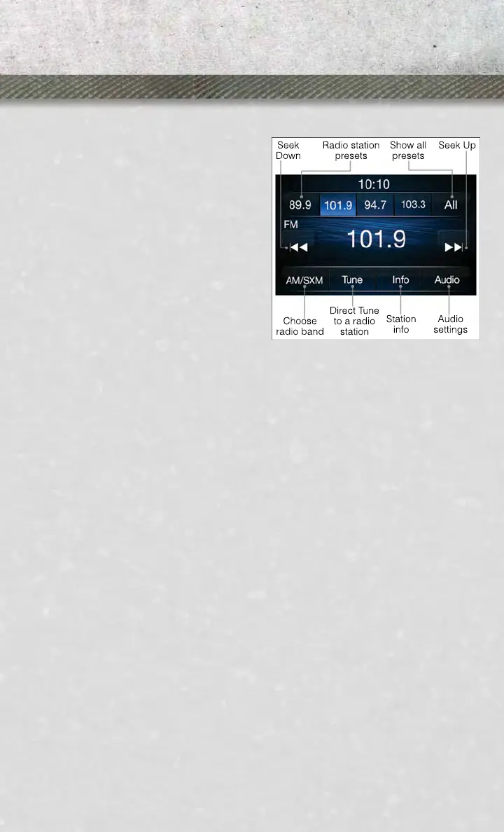 • To access SiriusXM Satellite Radio, press the “RADIO” hard-key and then the SXM
