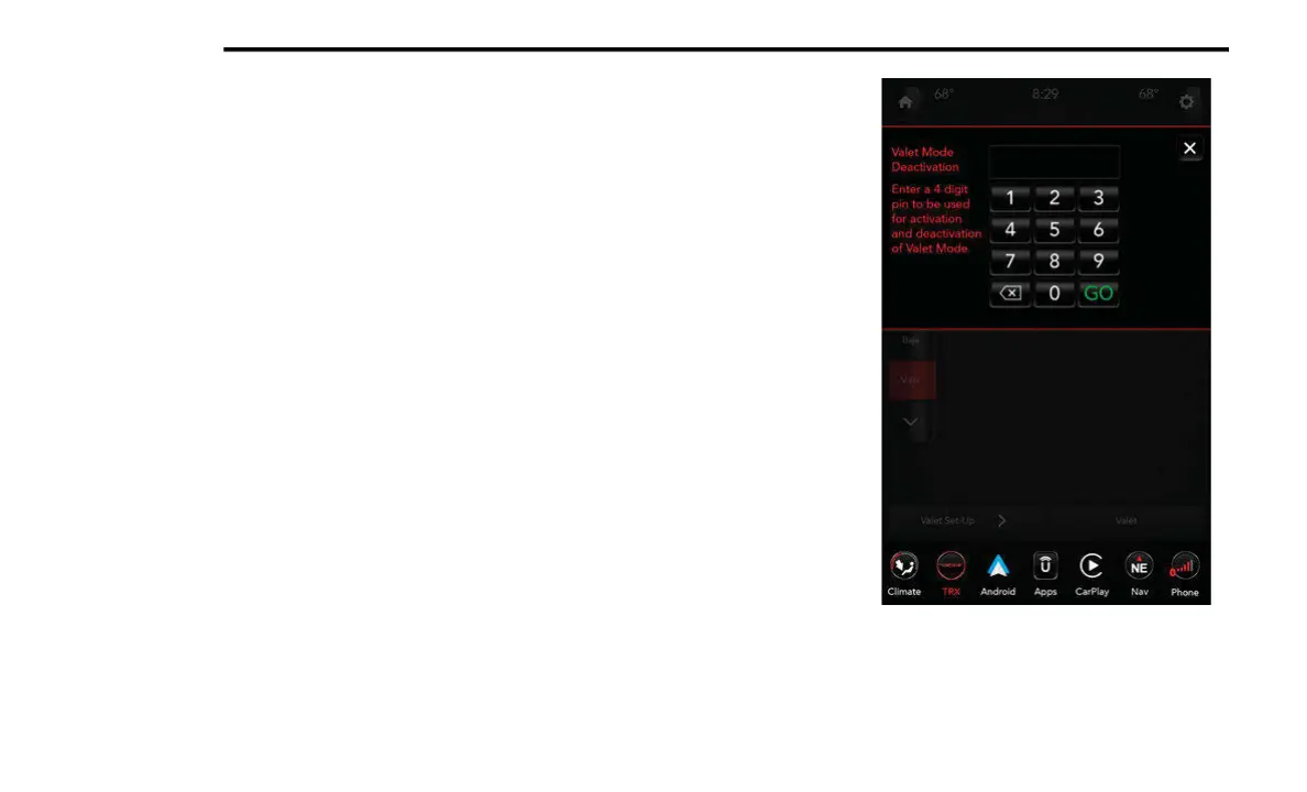 Valet Mode Deactivation