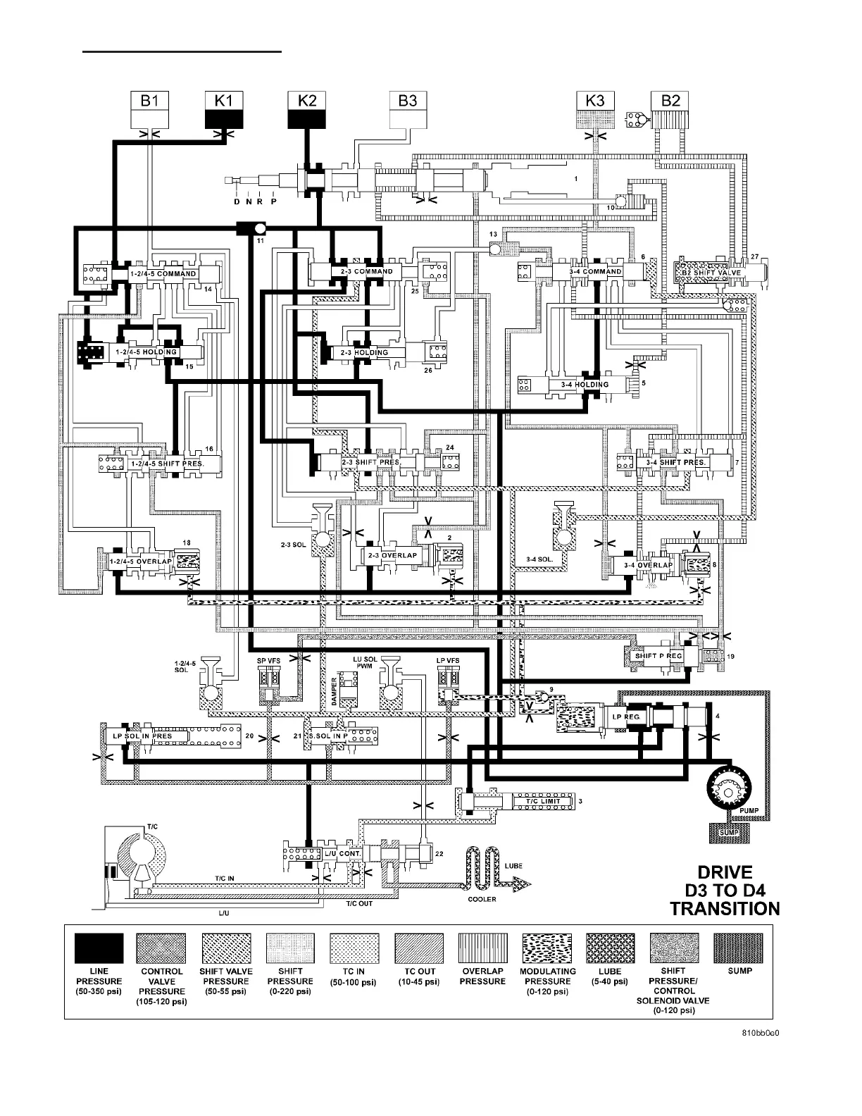 HYDRAULIC FLOW IN DRIVE - THIRD TO FOURTH GEAR TRANSITION