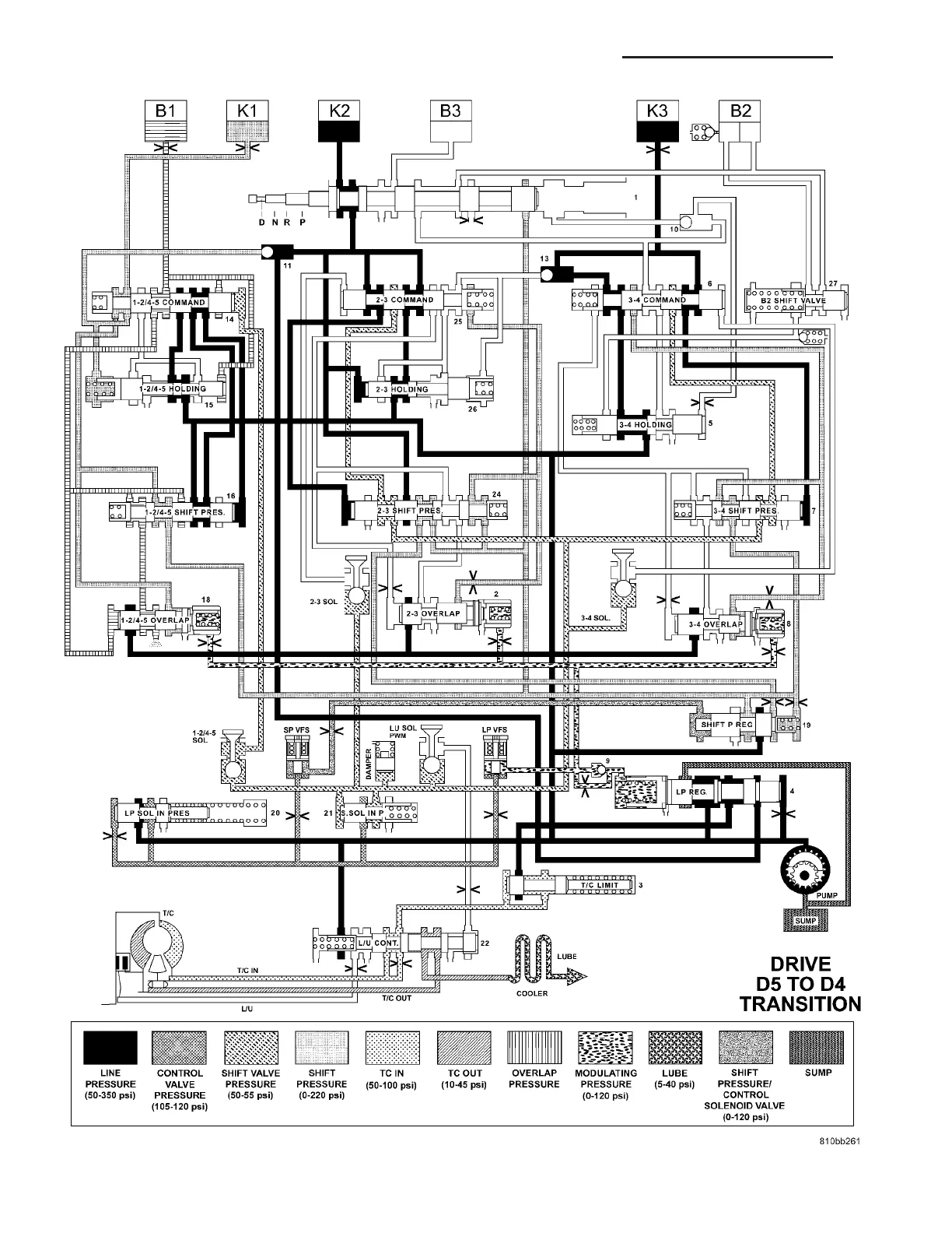 HYDRAULIC FLOW IN DRIVE - FIFTH TO FOURTH GEAR TRANSITION