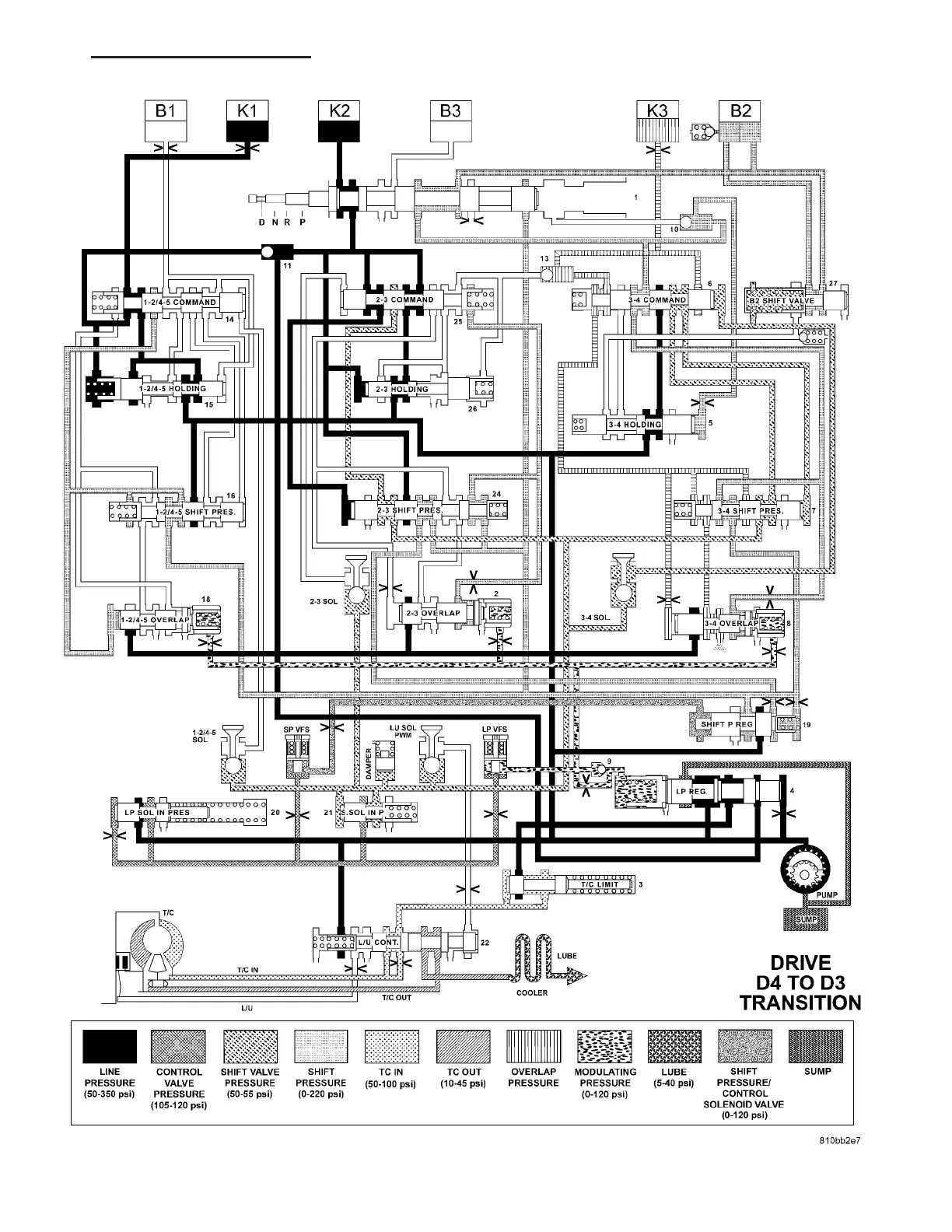 HYDRAULIC FLOW IN DRIVE - FOURTH TO THIRD GEAR TRANSITION