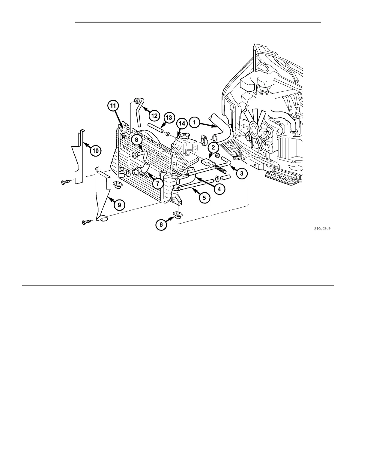 (13) Remove bolts secur ing int ercooler to ra diator.