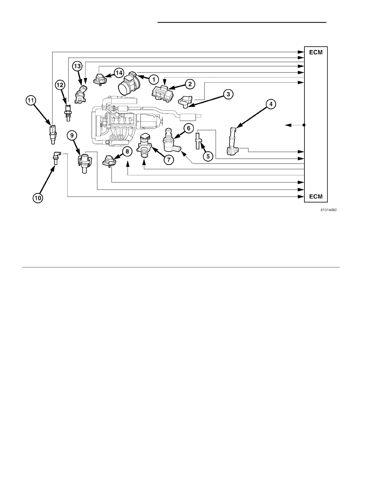 1 - MASS AIR FLOW SENSOR 8 - CHARGE AIR PRESSURE SENSOR