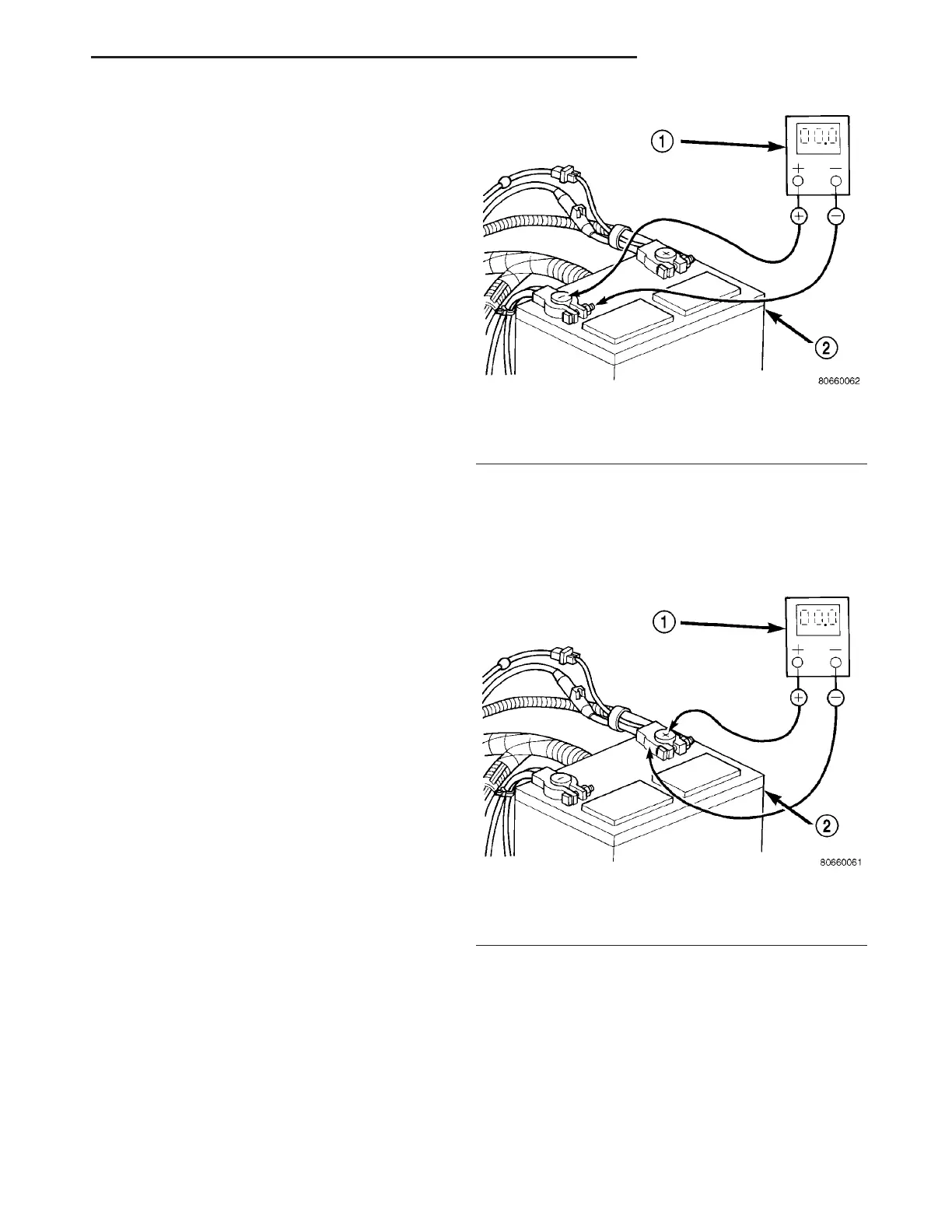 volt meter to negative batt ery ca ble clamp (Fig. 2).