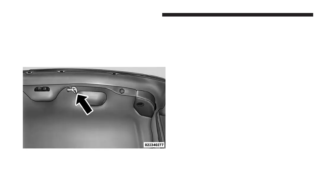 dark handle attached to the trunk latching mechanism.