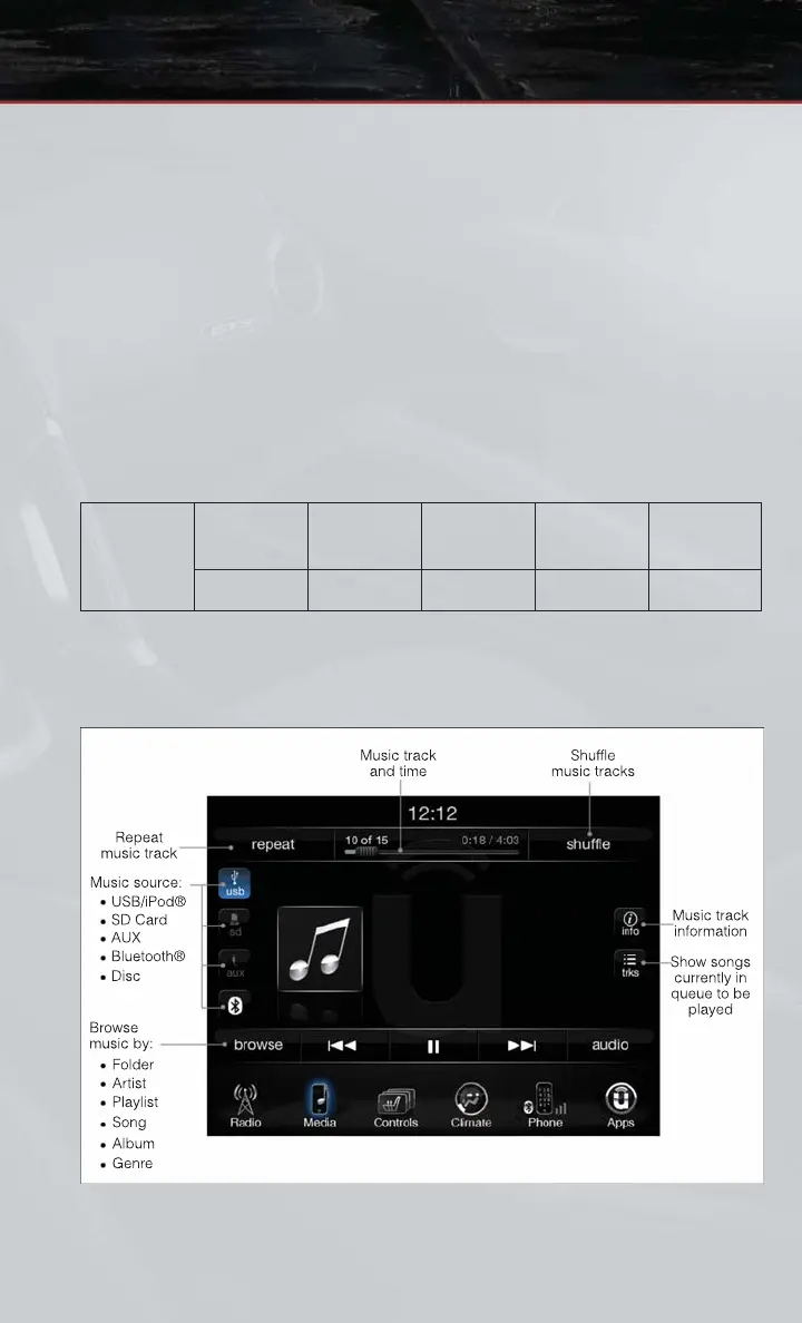 • Song playback can be controlled using the radio or Steering Wheel Audio Controls to