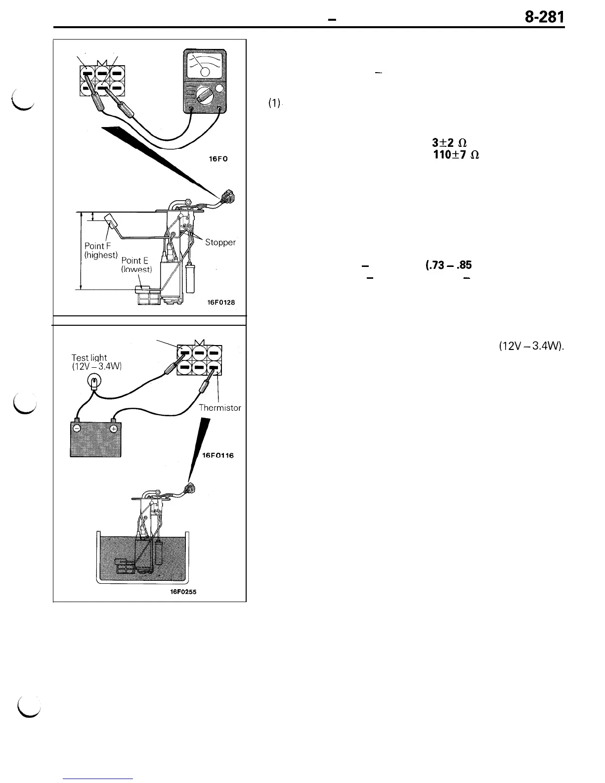 (I)- Check that resistance value between the fuel gauge