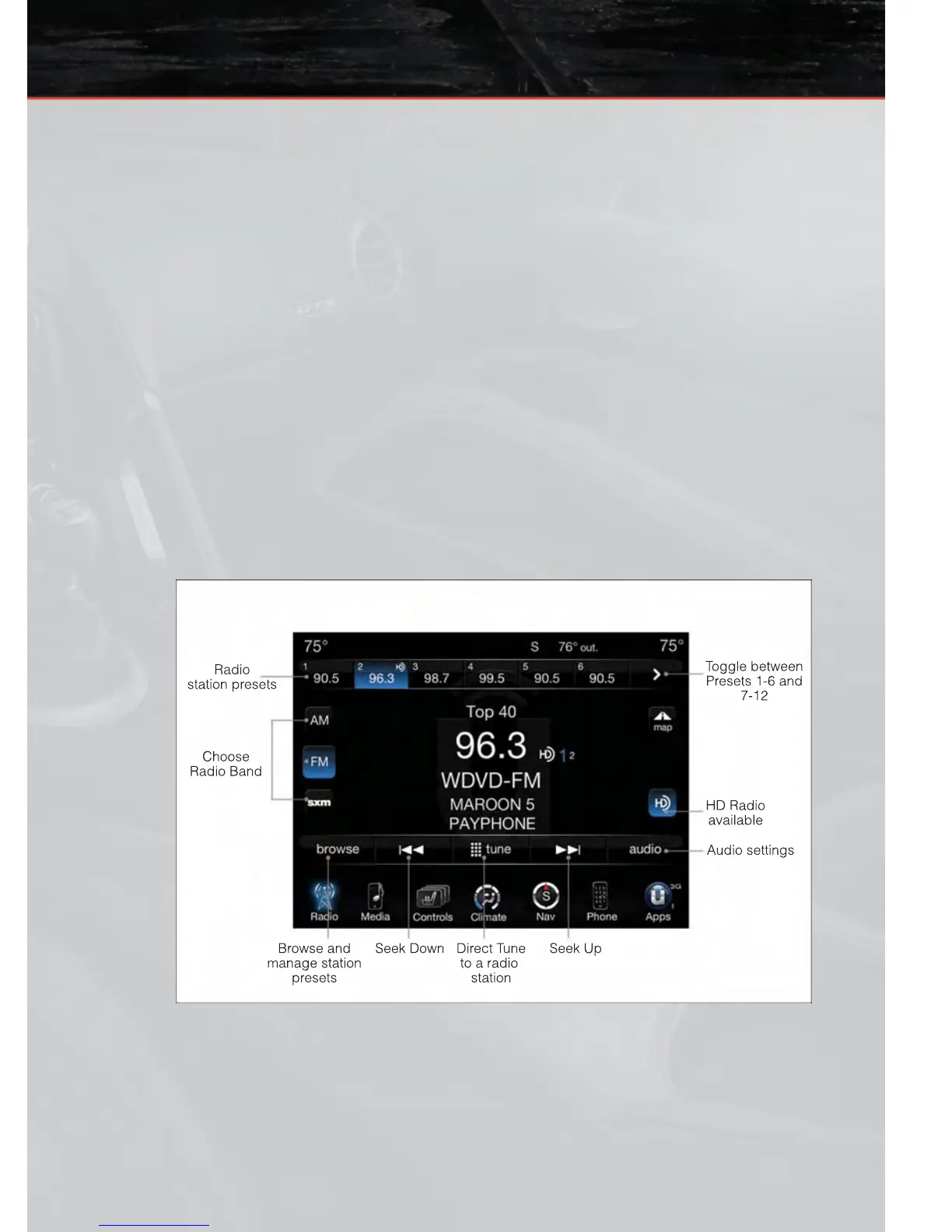 • To access the Radio mode, touch the Radio soft-key at the lower left of the screen.