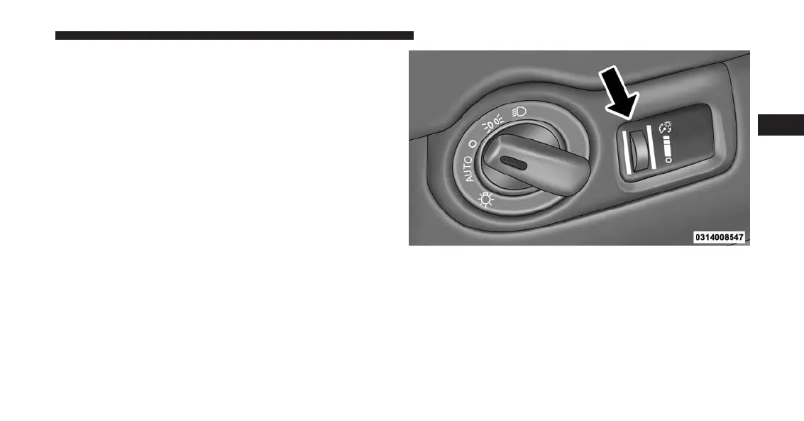 the dimmer control upward with the parking lights or