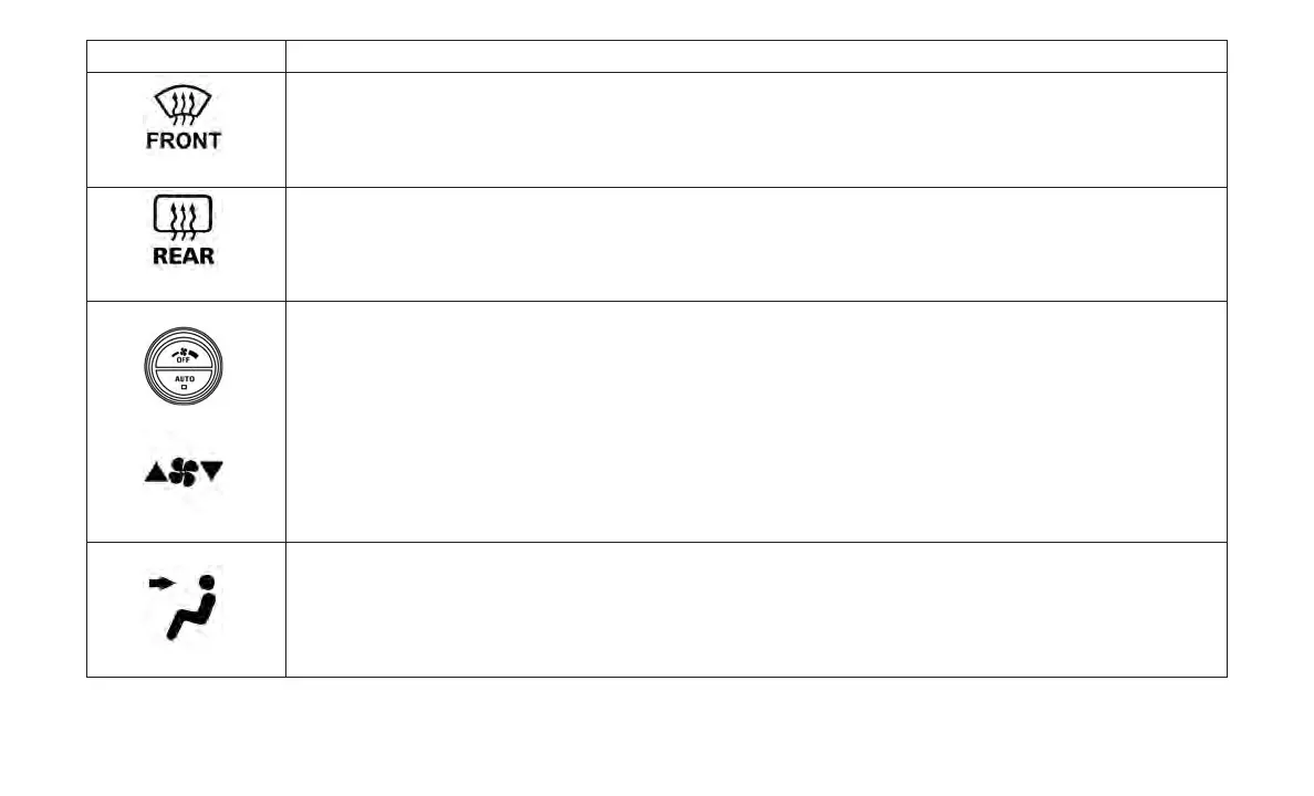 Press and release to change the current airflow setting to Defrost mode. The indicator illuminates when this feature is on.