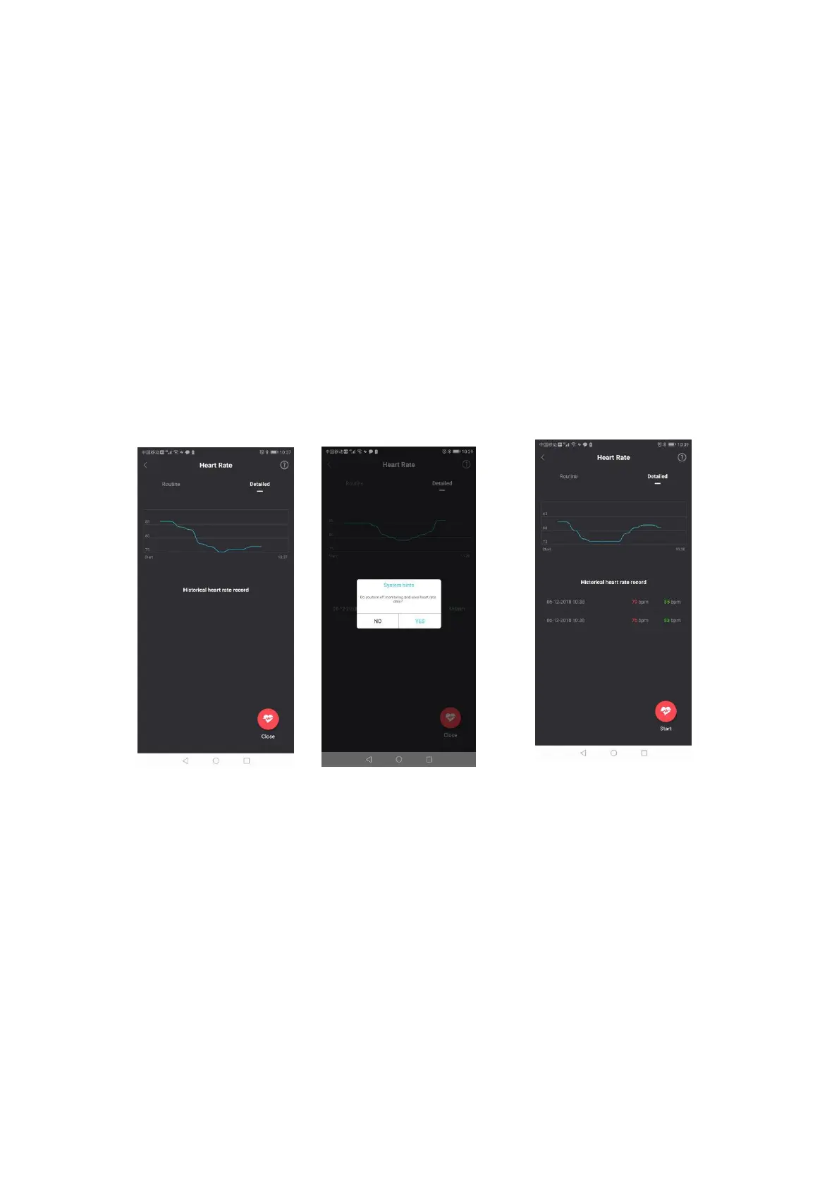 dynamic heart rate data. If you press close, the app will ask you if you would
