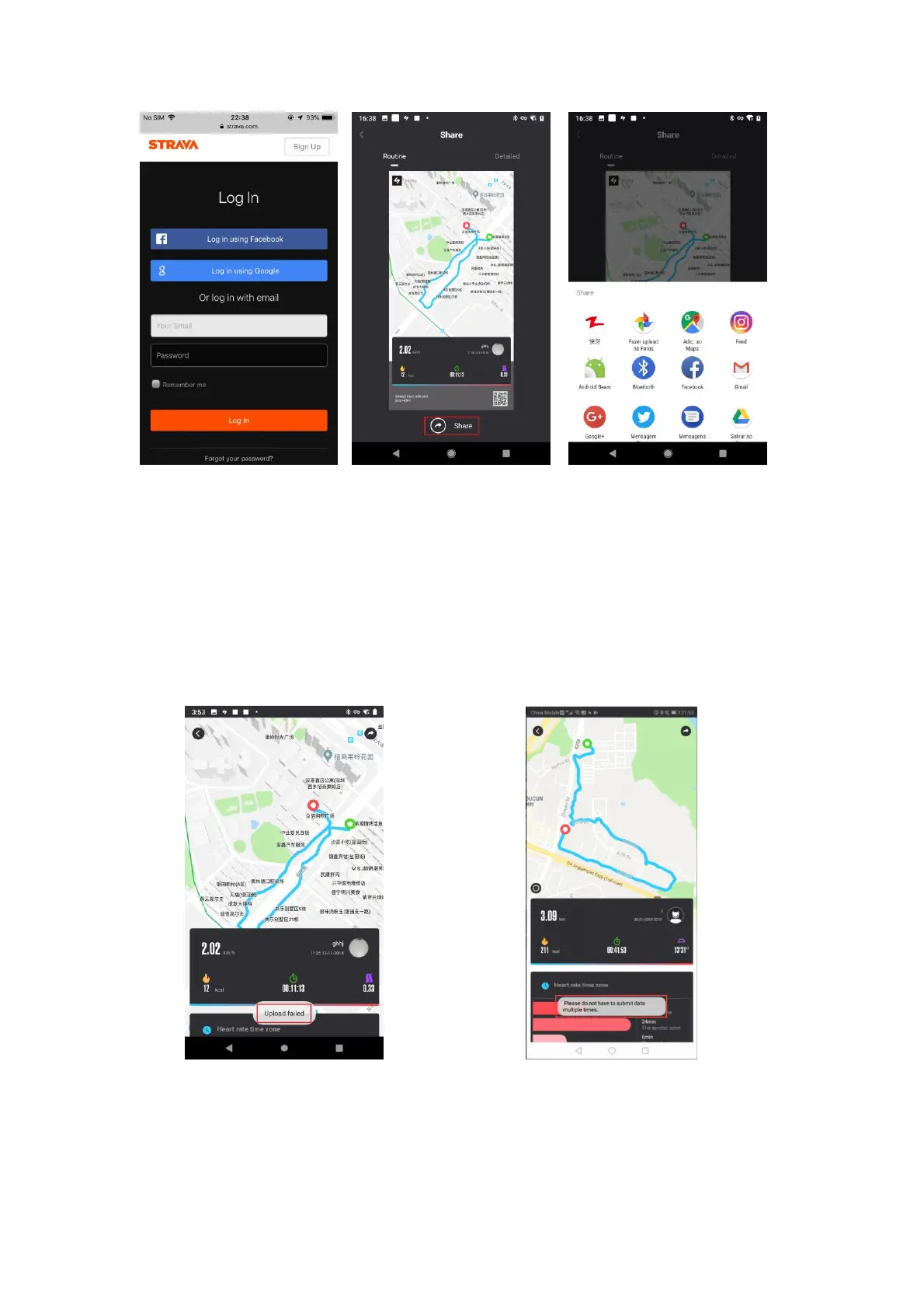 Pic. 45 Strava sharing successfully Pic.46 Strava share failed