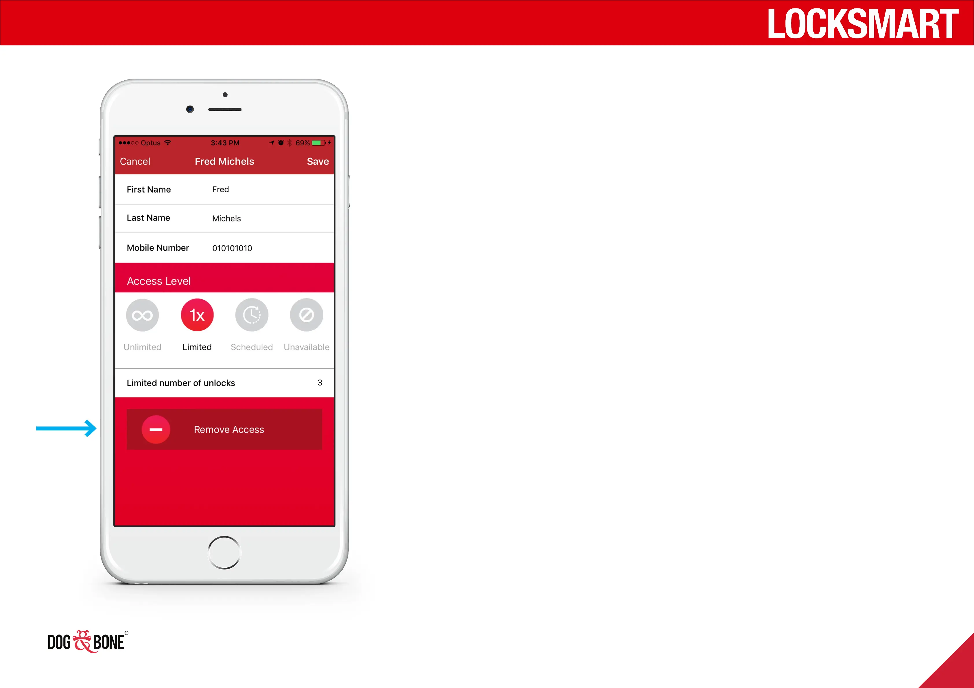 5. Press the ‘Remove Access’ button (indicated by the