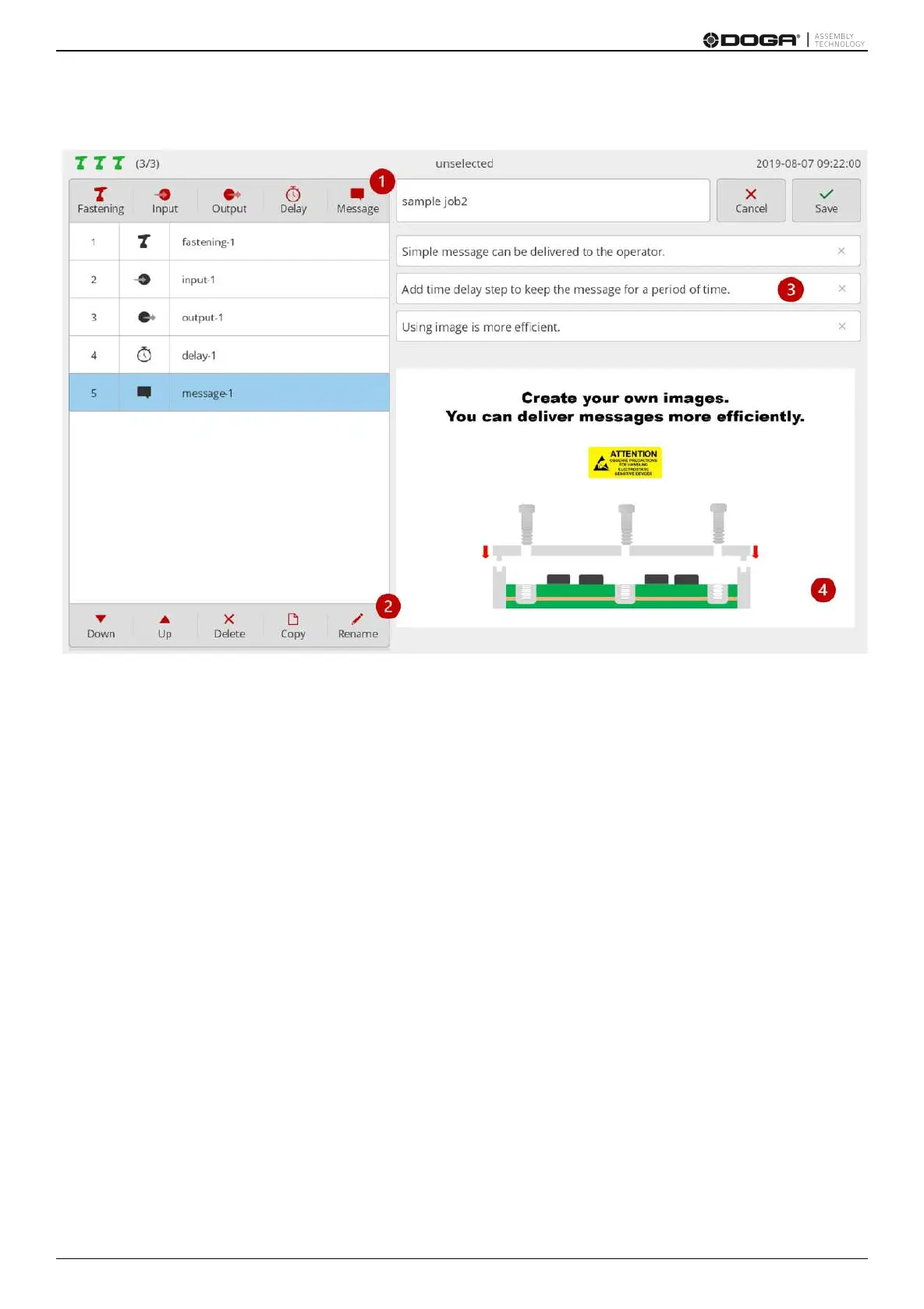 In general the message step should be programmed to display a message for a certain period of time by adding a
