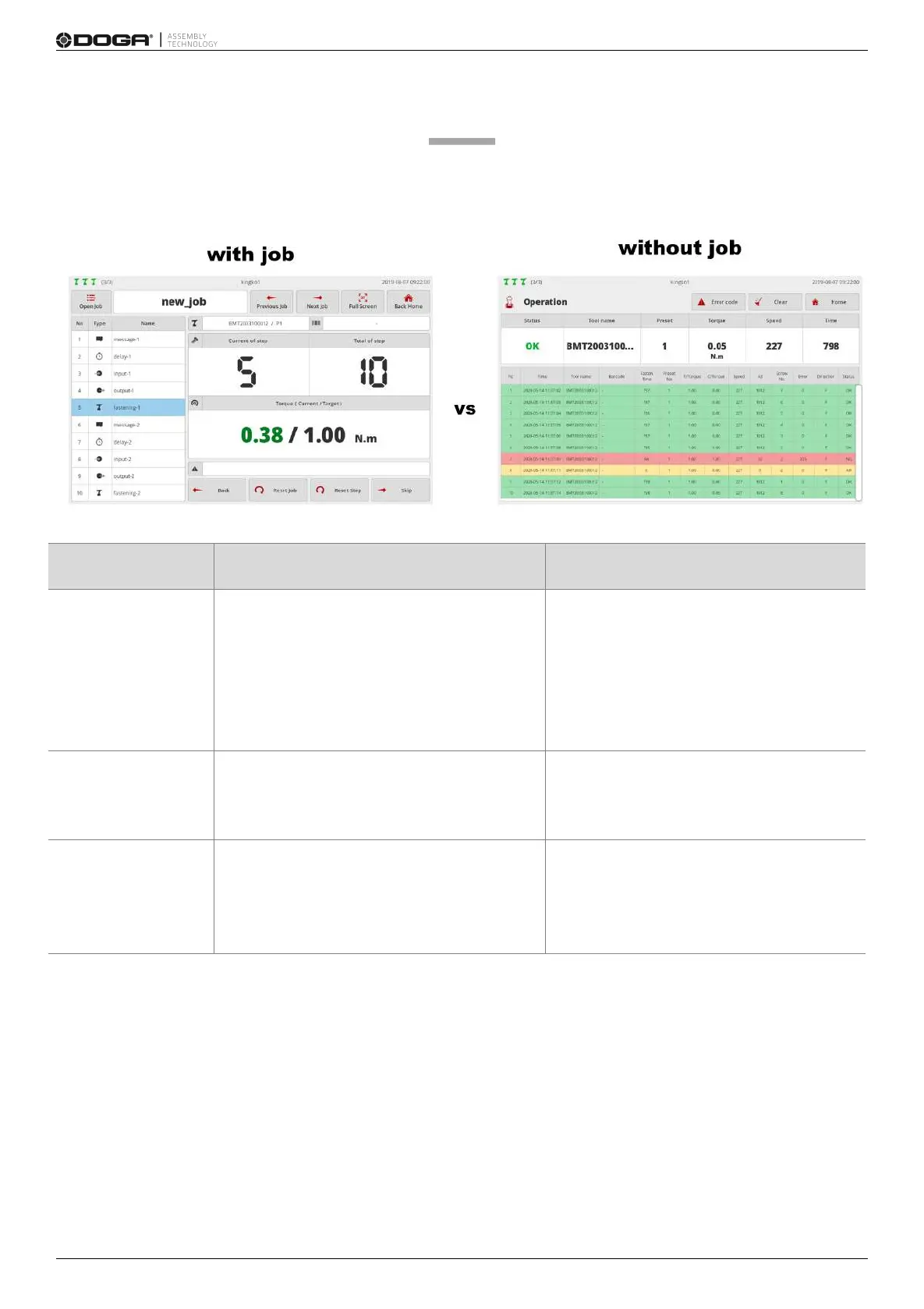 The operation page appears differently depending on operation mode settings (‘With job’ or ‘Without job’).