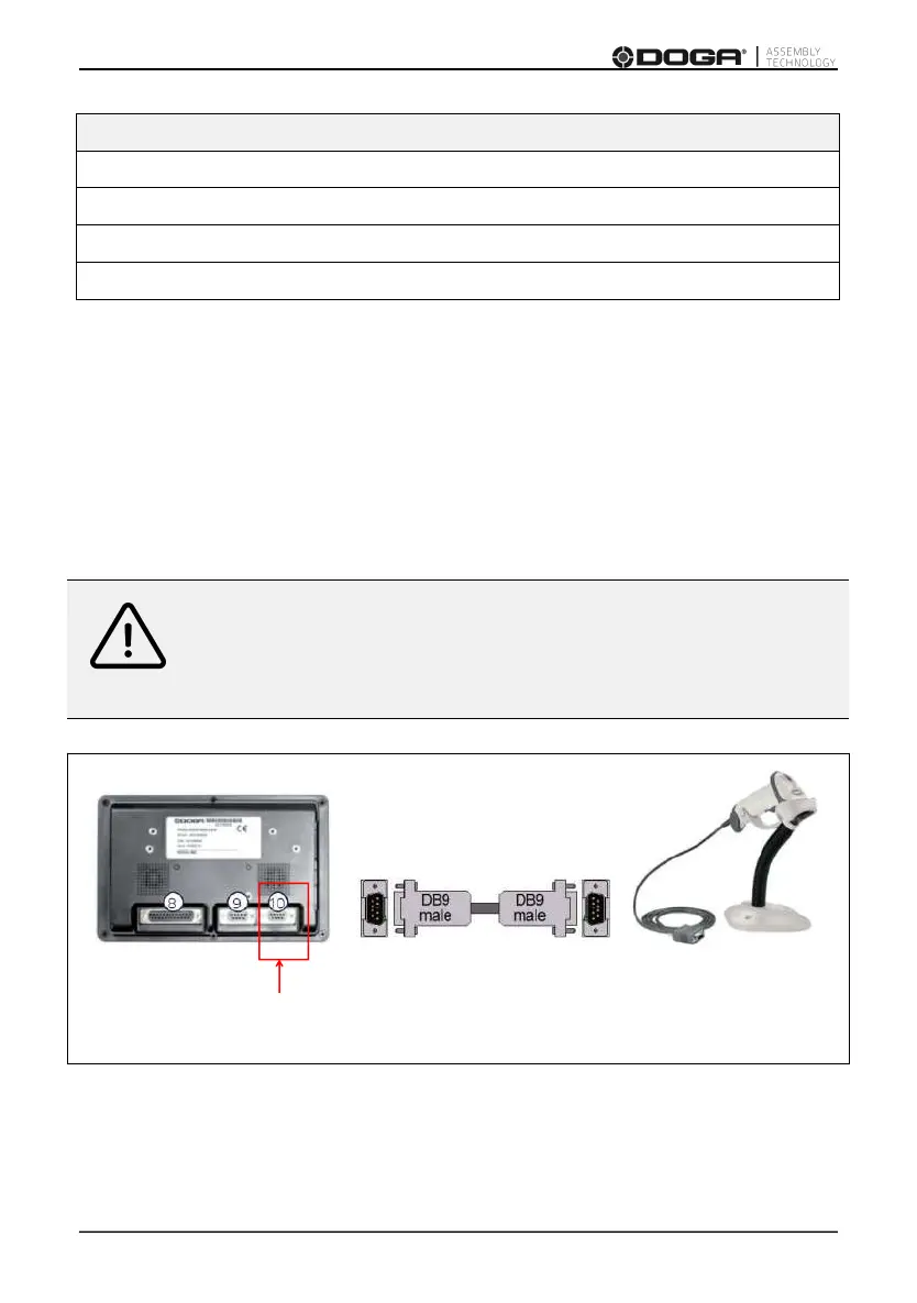 Do not connect the bar code reader directly to the DPC Touch V2.