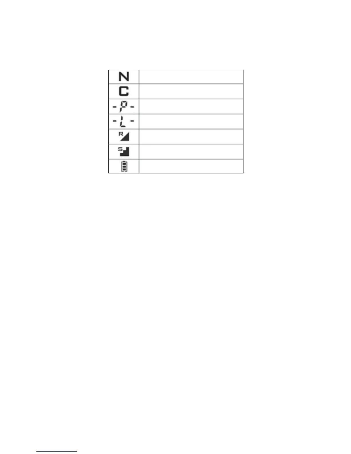 The icons on the LCD screen on the transmitter are listed below.
