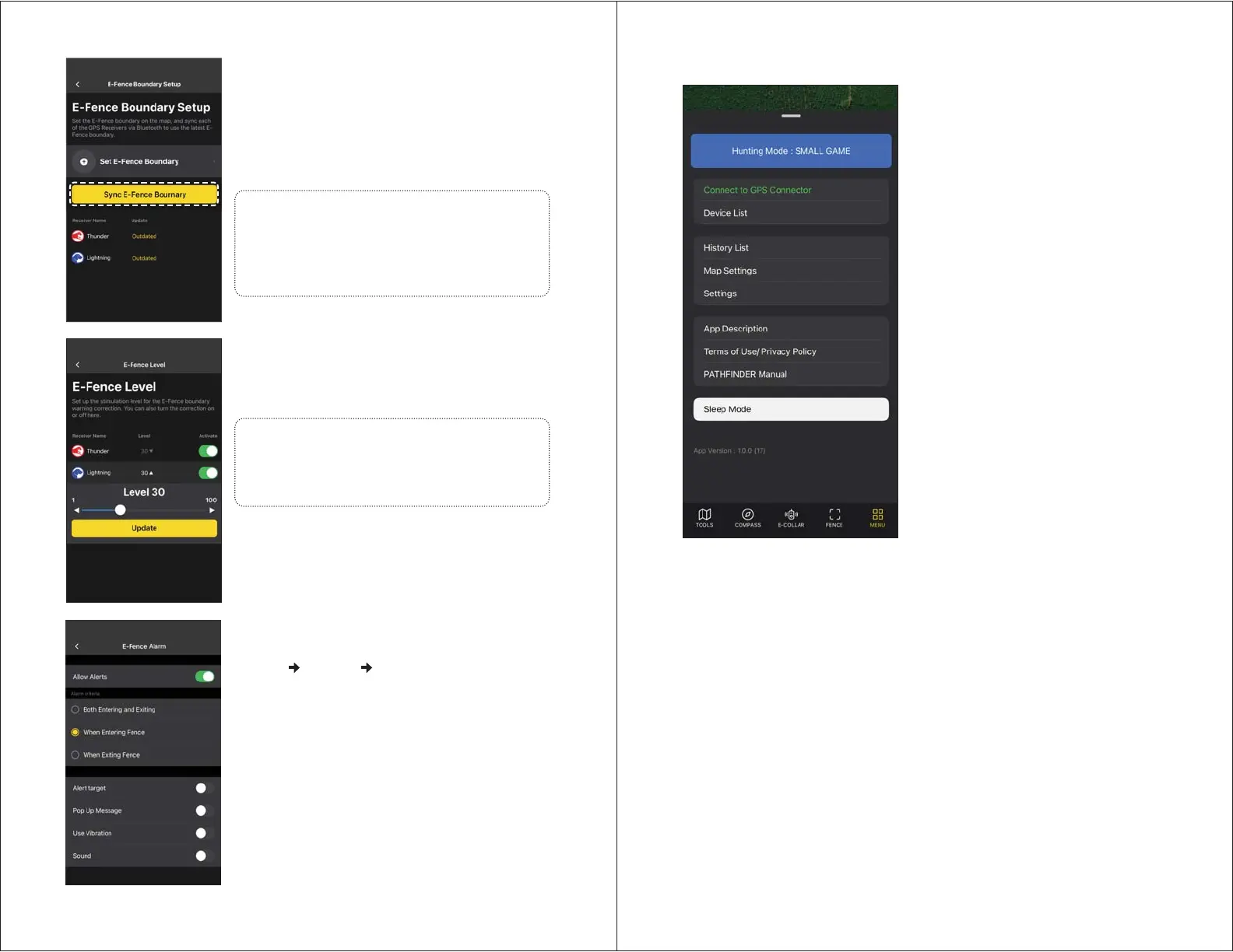 Go to E-Fence Settings to press the Activate
