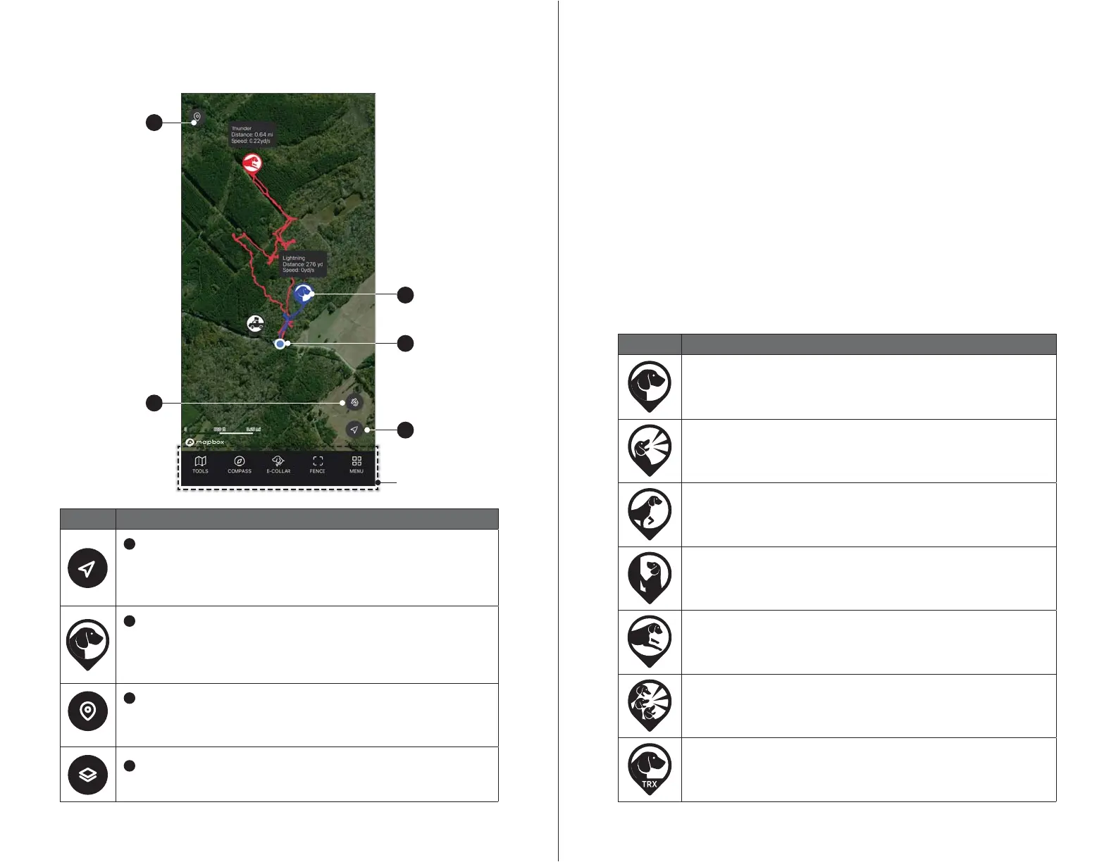 The dog icon shows your dog’s current action status. It also provides