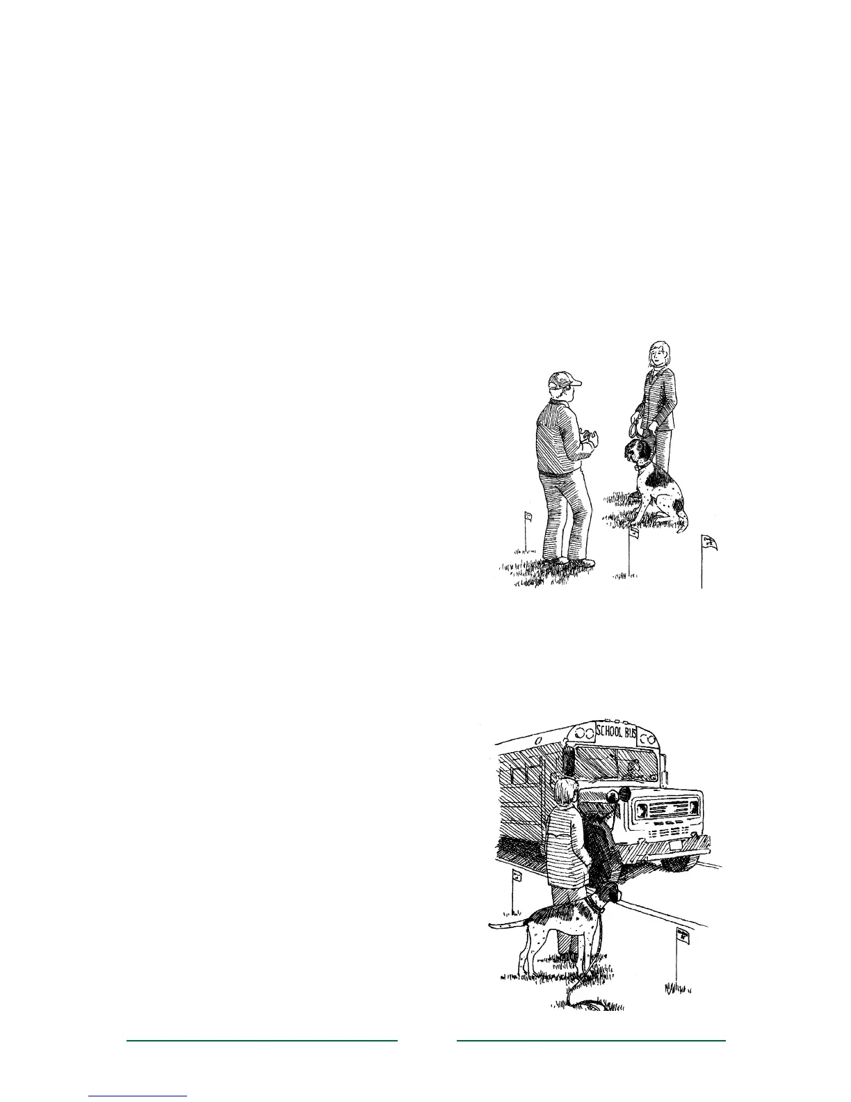 dog to receive a correction. Yell, “Watch out!” and tug him back into the Safety Zone.